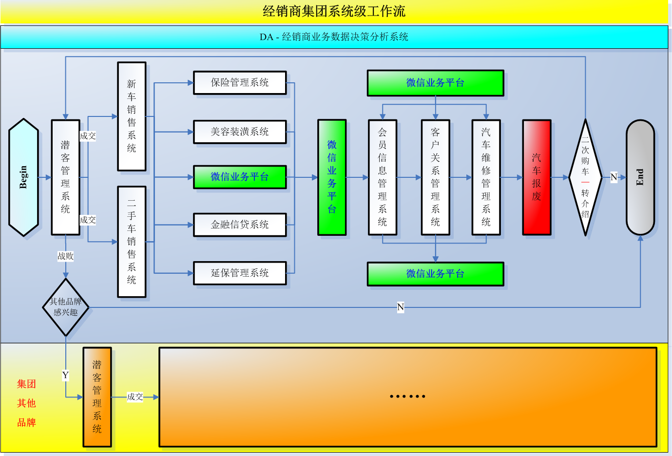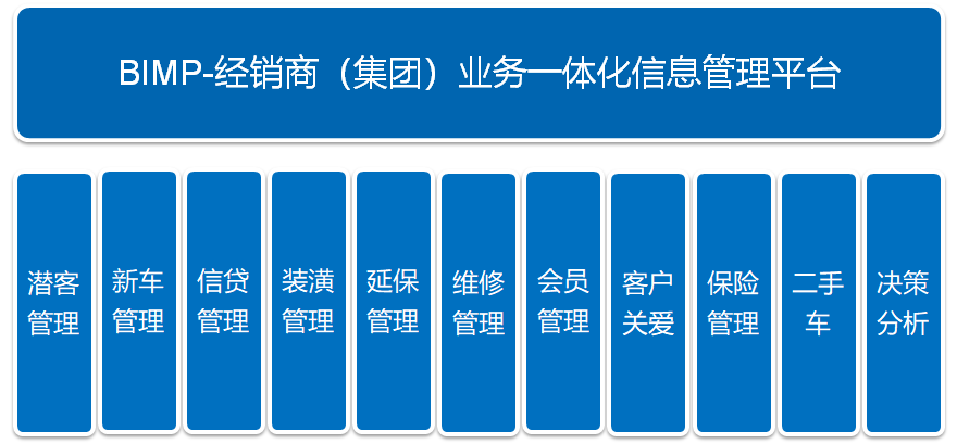 该系统从经销商和经销商集团的整体业务出发,围绕客户车辆的整个生命周期展开管理。极大的提高了经销商的业务管理水平,提升了经销商业务信息化管理的深度和广度,对经销商经营业绩的良性发展带来至关重要的作用。