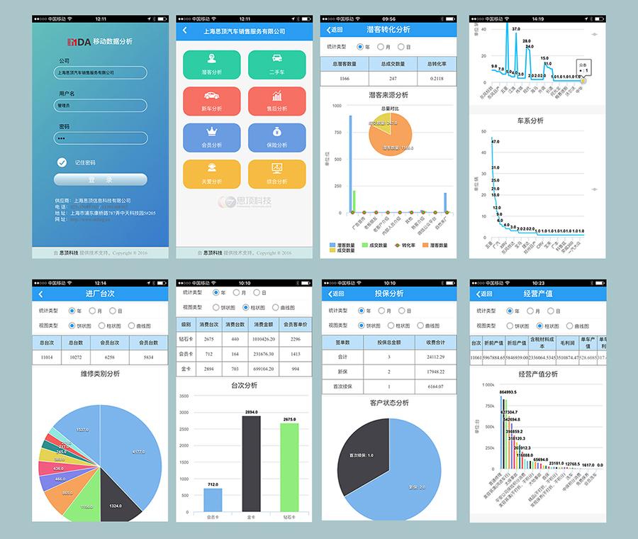 即通过手机跟经销商后台业务数据库的连接,分析并展现出经销商需要的各种业务分析报告。