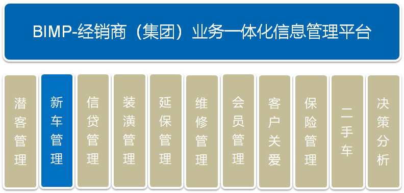 BIMP-AS 新车销售业务管理系统是BIMP平台的子模块之一,主要功能是帮助汽车经销商(4S店)、汽贸公司、综合大卖场等企业实现新车库存管理、