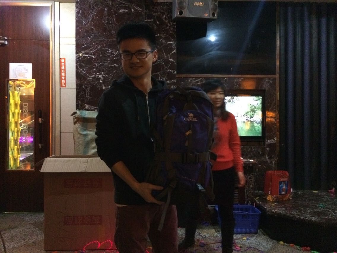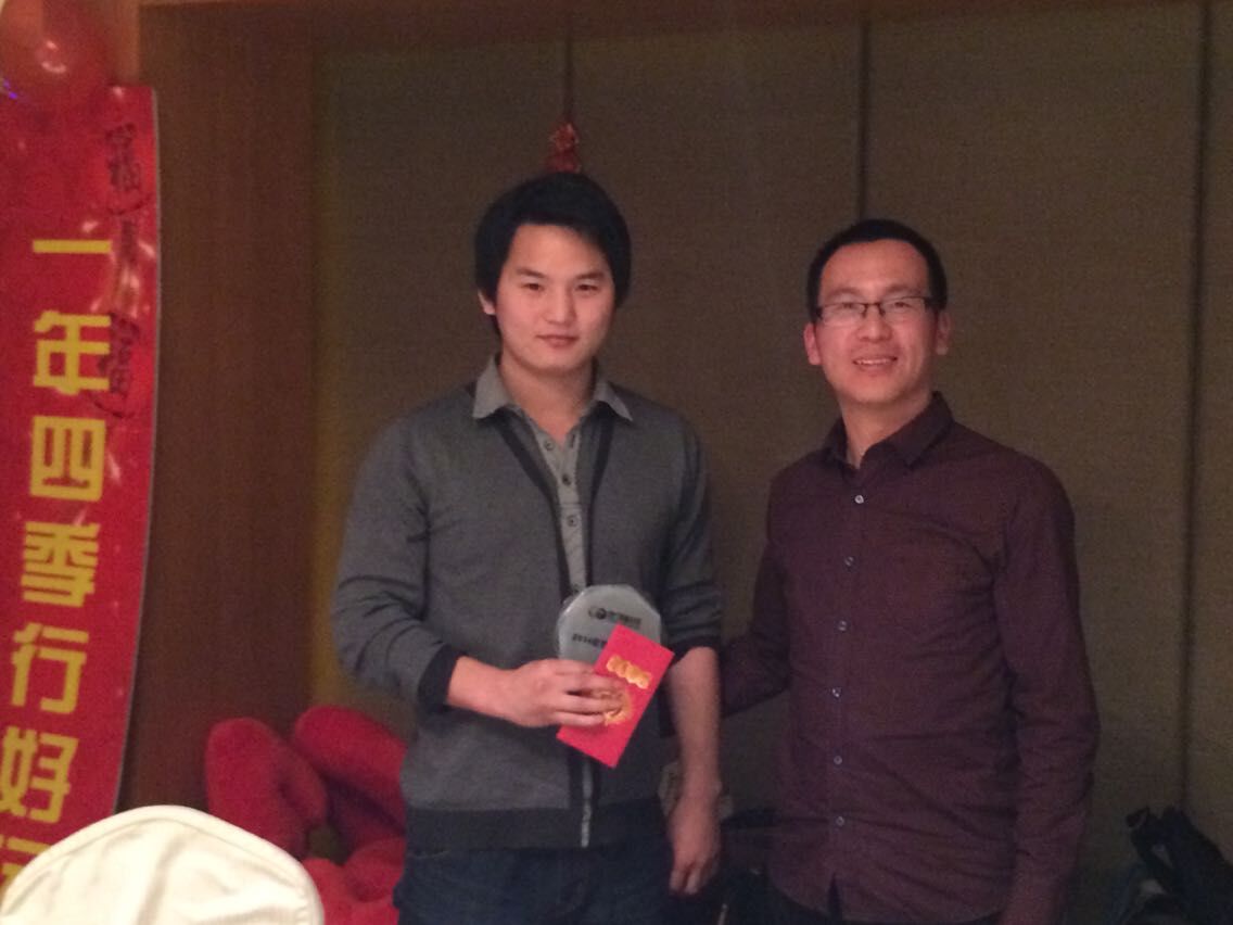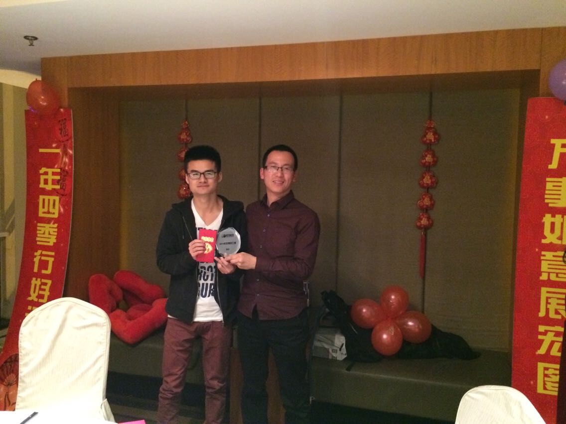 5、卢总颁发优秀员工奖,开发部优秀员工 — 廖会,获得奖杯和奖金,么么哒。
