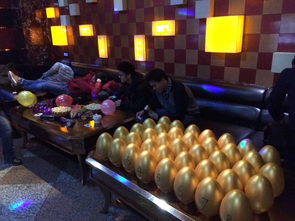 8、为了更好的搞活动,公司特别包了一个超豪华KTV包间,一桌子满满的金蛋,看谁今晚运气最好……