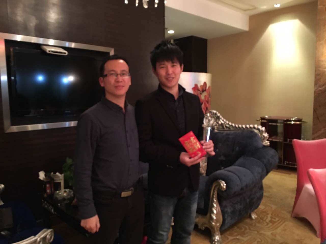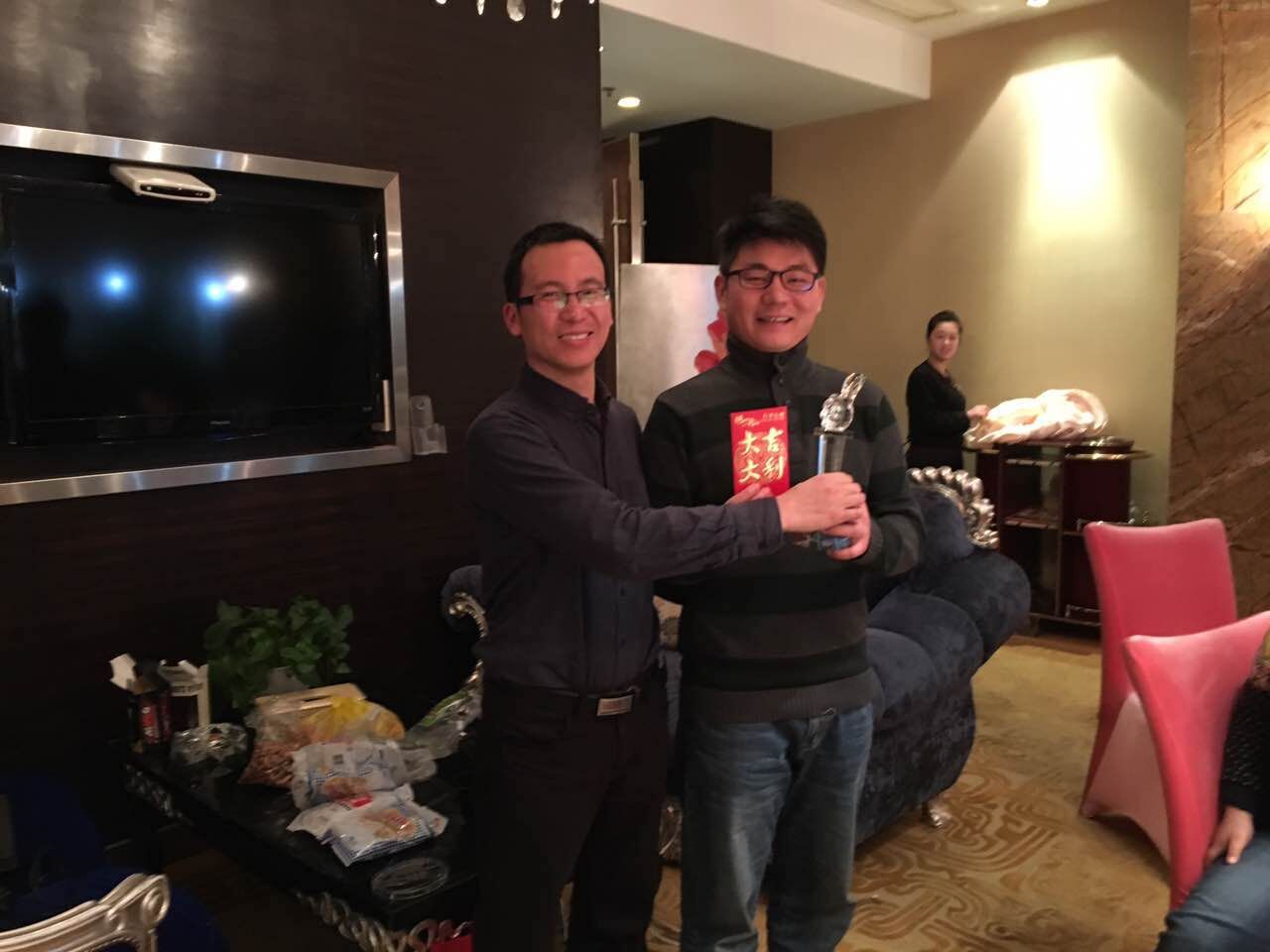 2、卢总给优秀员工颁发奖杯和奖金: