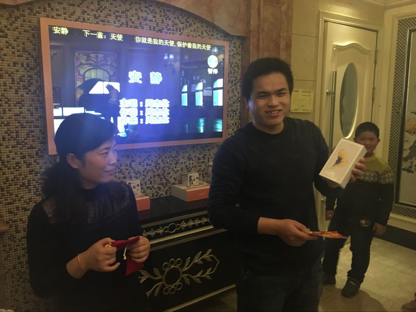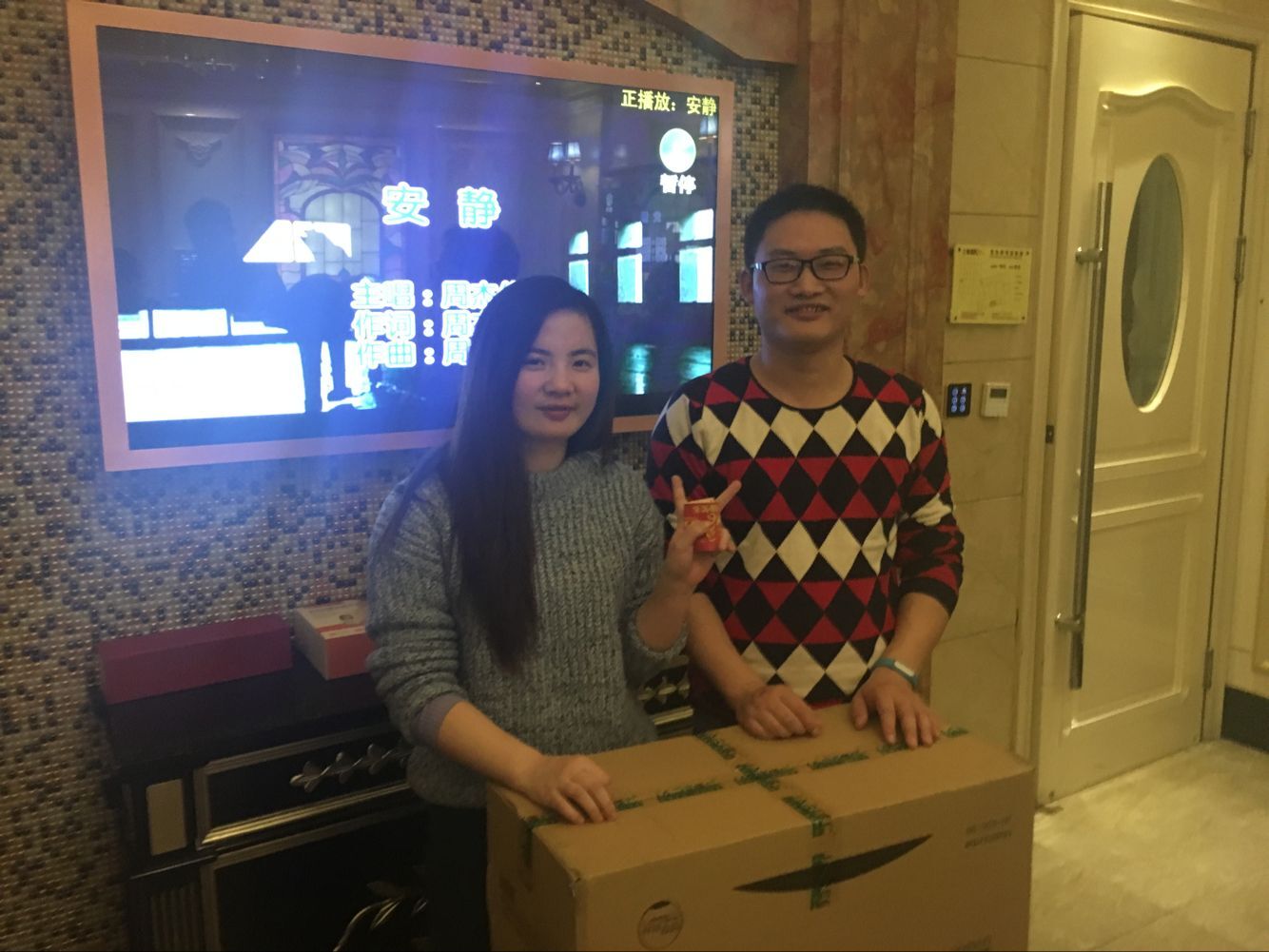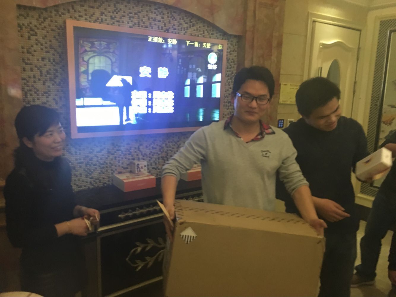 4、饭后抽奖活动,摸到大奖的同事展示: