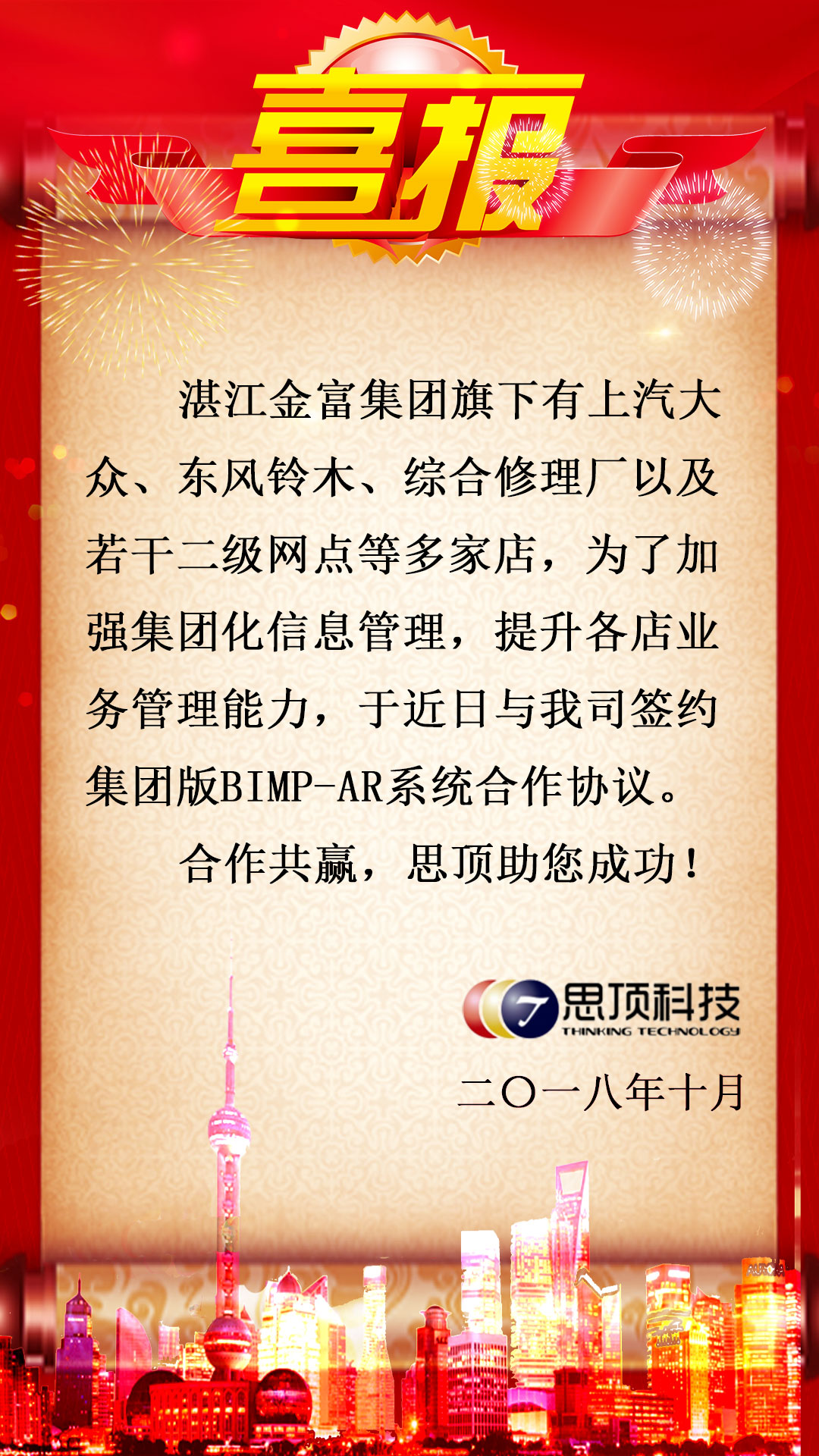 湛江金富集团于近日与我司签订集团BIMP-AR软件服务协议