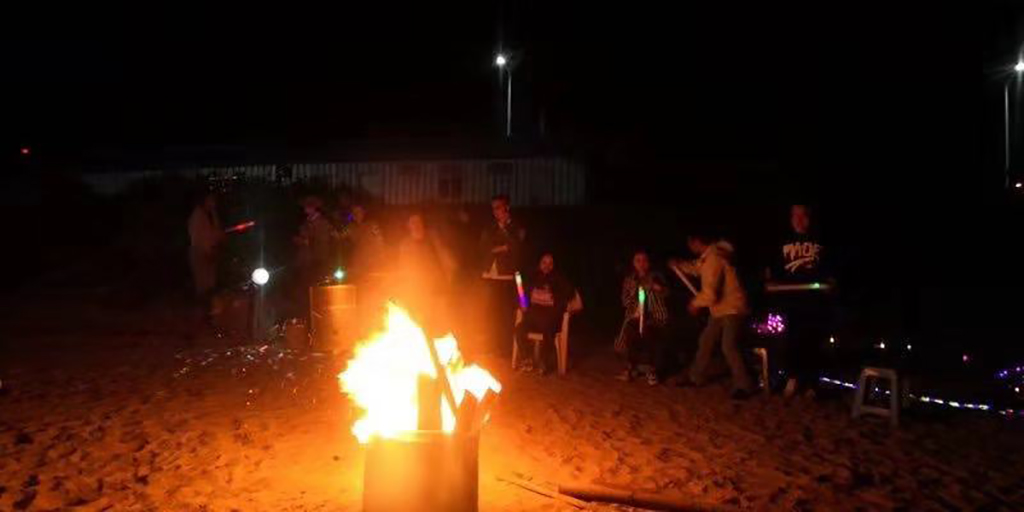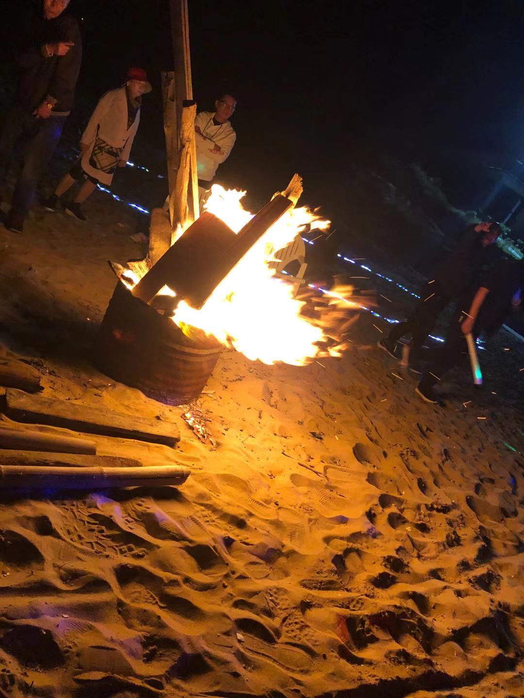 伴着阵阵海风, 小伙伴们在海边搭起篝火晚会,唱歌、游戏、猜成语,玩的简直不要太开心!